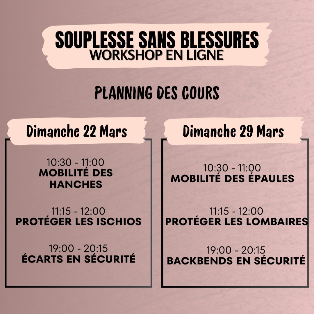 Pas du tout. Ce workshop est conçu pour les personnes qui se sentent raides, limitées ou en reprise. Les exercices sont progressifs et adaptés à tous les niveaux.